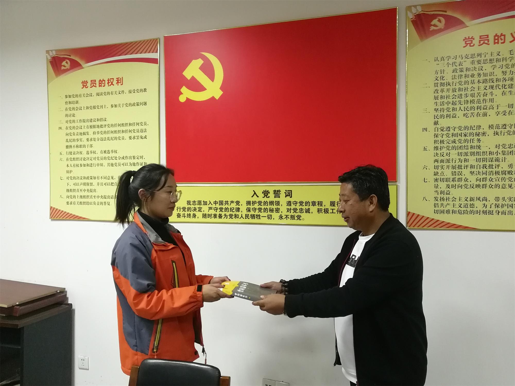 活動前,支部副書記申俊連帶領(lǐng)大家學(xué)習(xí)了《習(xí)近平關(guān)于“不忘初心、牢記使命”論述摘編》部分章節(jié)。隨后,申俊連和生日黨員分別面向黨旗舉起右拳,重溫了入黨誓詞。申俊連跟年輕黨員們分享了自己從1987年11月入黨至今的成長歷程以及入黨歷程,并發(fā)表了“黨員政治生日”感言,他認為作為一名黨員要做到對黨忠誠、有擔(dān)當(dāng)、講奉獻,做合格黨員。要不忘初心,克己奉公、樂于奉獻,時刻牢記自己是一名共產(chǎn)黨員,為年輕黨員做好表率,最后申俊連為生日黨員送上了生日禮物《曾國藩家書》讀物。
