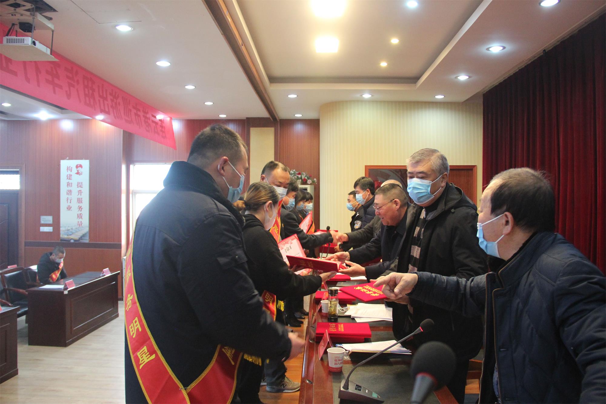 12月16日上午,連云港市交協(xié)出租委在連汽會議室舉行連云港市巡游出租汽車行業(yè) “十佳服務(wù)明星”、“十佳安全標(biāo)兵”評選活動表彰大會,市交通運(yùn)輸局、市運(yùn)輸事業(yè)發(fā)展中心、市交協(xié)出租委相關(guān)領(lǐng)導(dǎo)為獲獎的33位優(yōu)秀駕駛員頒發(fā)了證書。汽服公司出租汽車事業(yè)部的章文彩、譚兆亮、黃仁杰等5位出租車駕駛員榮獲“十佳服務(wù)明星”稱號;楊善其、陸學(xué)青等7位駕駛員榮獲“十佳服務(wù)明星”提名獎;潘振銀、朱文強(qiáng)等5位駕駛員榮獲“十佳安全標(biāo)兵”稱號;相庚林、尹澤龍2位駕駛員榮獲“十佳安全標(biāo)兵”提名獎。