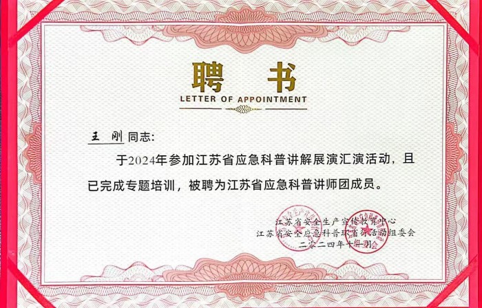 江蘇省應急科普講解展演匯演活動由江蘇省安全生產(chǎn)宣傳教育中心與江蘇省安全應急科普環(huán)省活動組委會聯(lián)合舉辦,此次活動為期兩天,涵蓋應急科普講解集訓及展演匯演兩大重要環(huán)節(jié)。在集訓期間,王剛?cè)硇耐度,深入學習應急科普知識,不斷磨礪講解技巧。他與來自全省各地的優(yōu)秀學員交流互動,汲取多元經(jīng)驗,實現(xiàn)自我能力的快速提升。