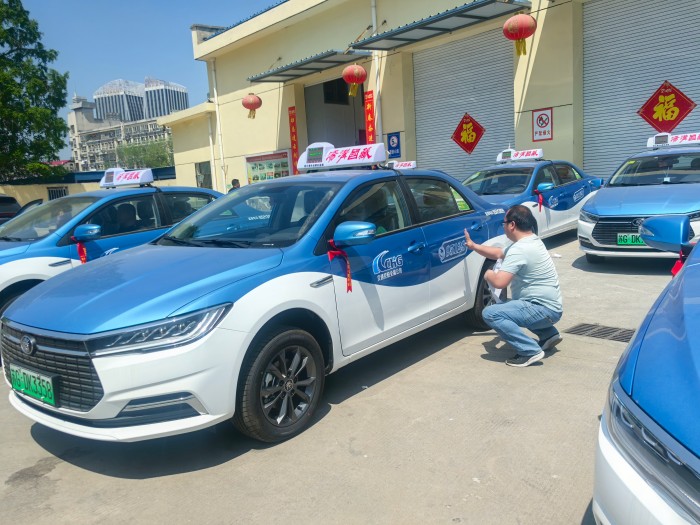 4月29日,汽服公司出租汽車(chē)事業(yè)部院內(nèi)停車(chē)場(chǎng)地上一派熱鬧繁忙景象,管理人員正在抓緊時(shí)間對(duì)即將上路營(yíng)運(yùn)的8臺(tái)新能源出租車(chē)進(jìn)行全面檢查,車(chē)內(nèi)專(zhuān)用服務(wù)設(shè)施設(shè)備齊備,運(yùn)轉(zhuǎn)正常。巡游出租汽車(chē)頂燈、95128統(tǒng)一叫車(chē)熱線、企業(yè)Logo等規(guī)范服務(wù)標(biāo)識(shí)在嶄新車(chē)身一一展現(xiàn),不僅方便乘客識(shí)別與求助,更彰顯著國(guó)企出租公司專(zhuān)業(yè)形象。