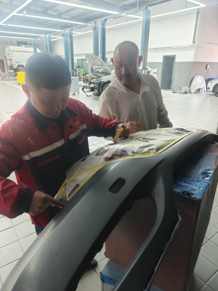 在這個(gè)五月的車(chē)間里,何錫忠從底漆的涂抹技巧,講到面漆的光澤把控,毫無(wú)保留地傳授著自己的經(jīng)驗(yàn)。徒弟緊跟師傅的教導(dǎo),在實(shí)踐中不斷探索。他們?cè)诳酒岱颗缘纳碛,不僅是簡(jiǎn)單的師徒授業(yè),更是汽車(chē)維修行業(yè)工匠精神的延續(xù)。在日復(fù)一日地教導(dǎo)與學(xué)習(xí)中,他們?yōu)檐?chē)輛的完美修復(fù)、為行業(yè)的發(fā)展貢獻(xiàn)著自己的力量。