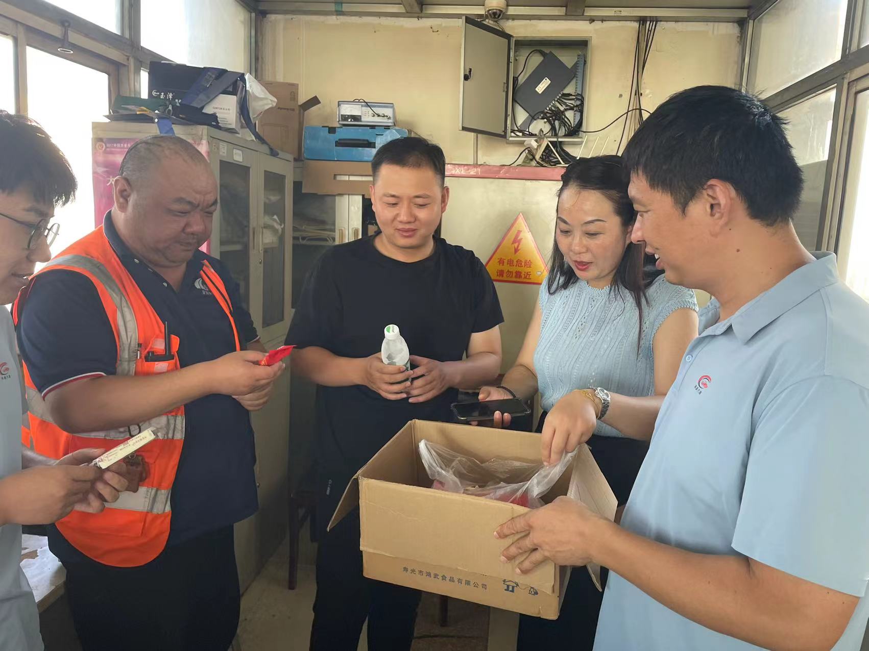 近日,港城驕陽似火,熱浪翻滾,最高氣溫持續(xù)攀升至38℃以上,酷熱難耐,給堅守在一線的員工帶來了嚴峻“烤”驗。為切實做好高溫天氣下一線員工的防暑降溫工作,保障員工的身體健康,7月10日下午,檢測事業(yè)部經(jīng)理劉海燕親自帶隊,深入一線檢測車間,開展“夏日送清涼”慰問活動,為堅守崗位的員工送去了各類雪糕、防暑降溫飲品等清涼物資。